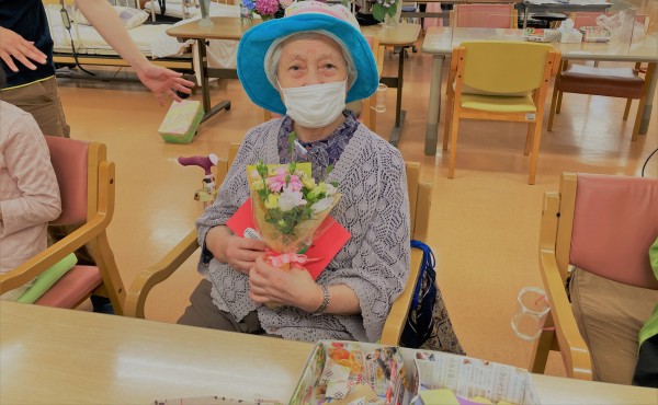 お誕生日カードと少し小さめですがお花の贈呈です♪