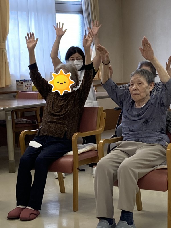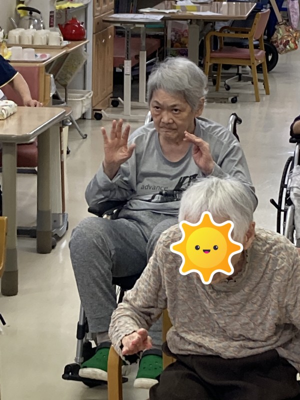 普段居室でお休みの利用者様も頑張って