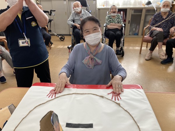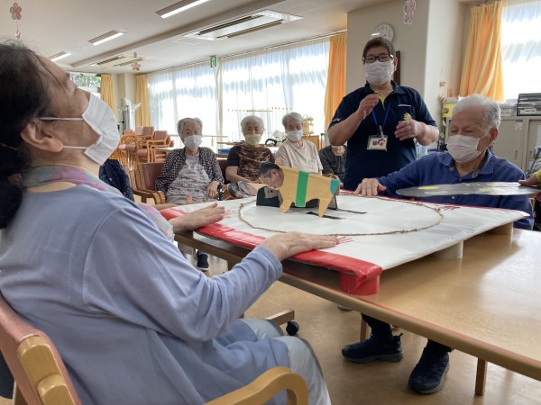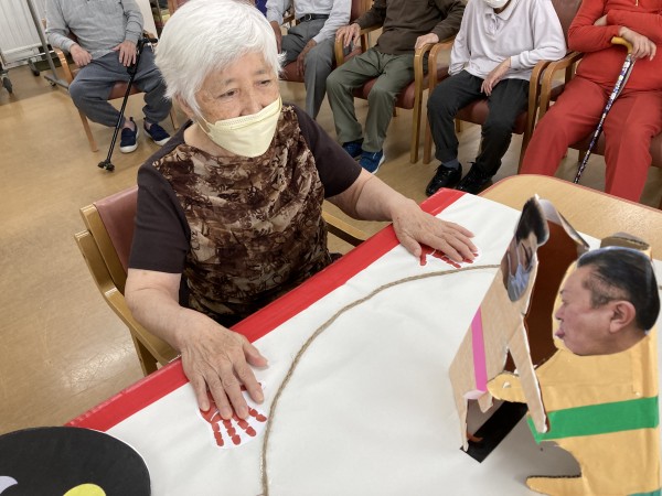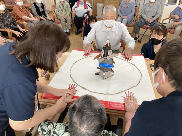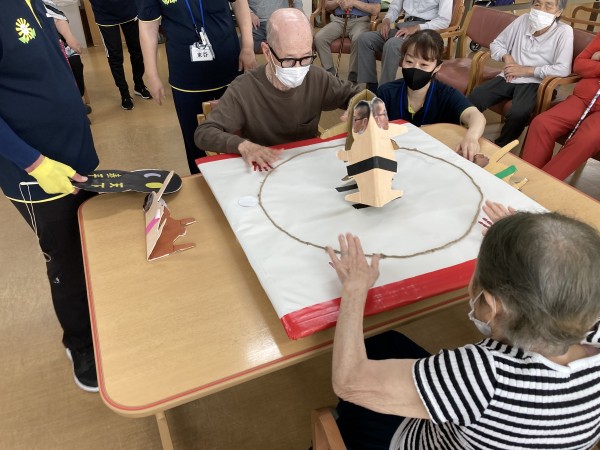 今日のレクリエーションは、「父の日のイベント」として、約3年ぶりにトントン相撲を行いました。