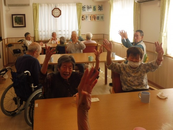 本日は「父の日イベント」ということで、皆さんで歌と体操のレクリエーションからスタートしました。(^^)/