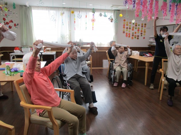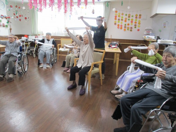 今日は、いつもと違ってタオルを使った体操もありました。