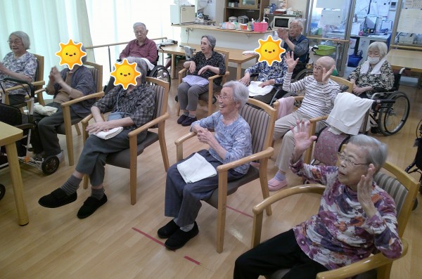 昨日、リモートの体操があり、今回は1階の食堂に集まってもらい、
