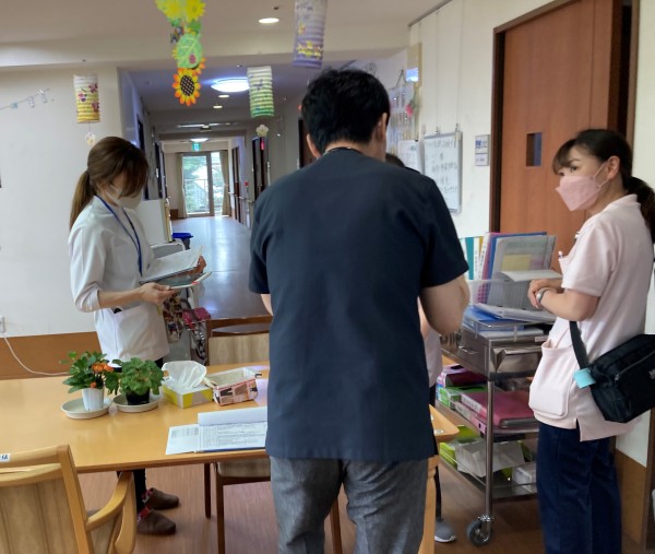 それに薬局の薬剤師も付いて、それぞれのお部屋を回っての診察です。