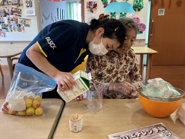 ご利用者様と梅干作りをスタートです!