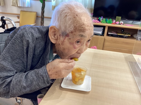 おやつに職員お手製のフルーツポンチサイダーをお出しして召し上がりました。