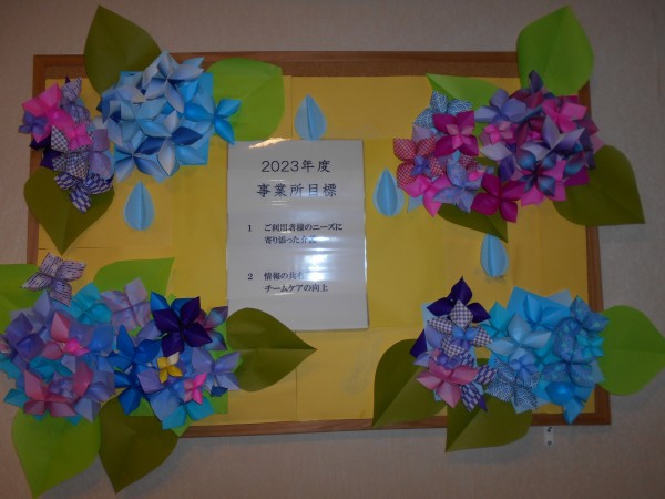他の事業所のブログをちょこっと見てみましたが、6月の壁画は紫陽花を作成されたところが多かったですね(*´ω`*)