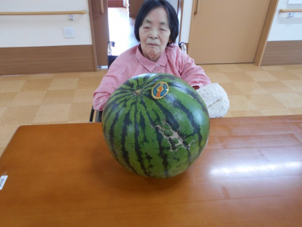 いただいたスイカはこの日のおやつに皆様で召し上がっていただきました(*'ω'*)