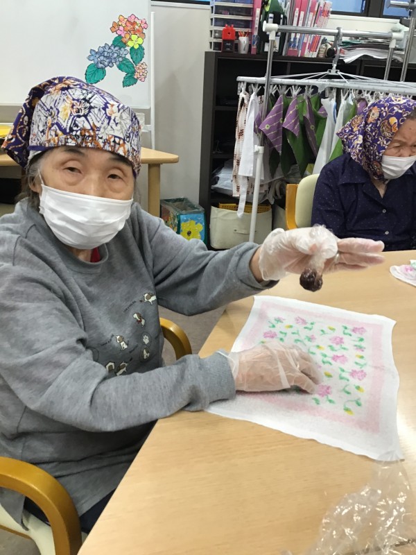 この生地が皆様、手にくっついて悪戦苦闘"(-""-)"