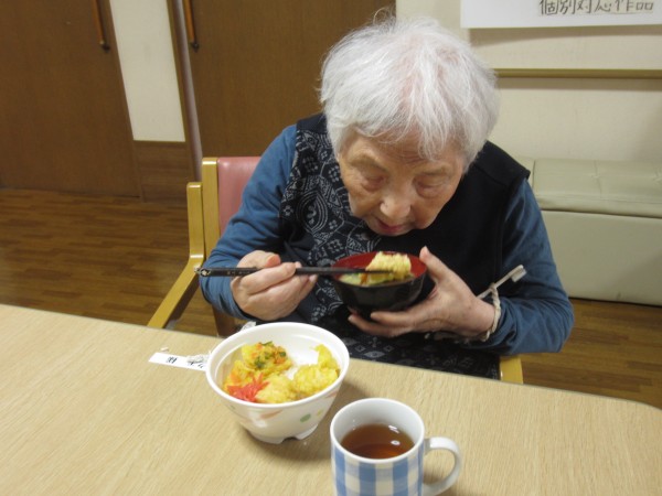 皆様が「美味しいですね。まだ食べたいなー。天丼の上の海老天ぷらは何でこんなに美味しいんだろう。」と嬉しそうに