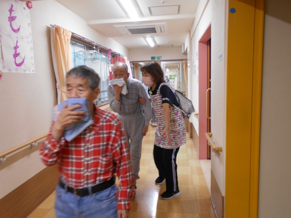 22日、みんなの家戸田では火事を想定した避難訓練と消火訓練を行いました。