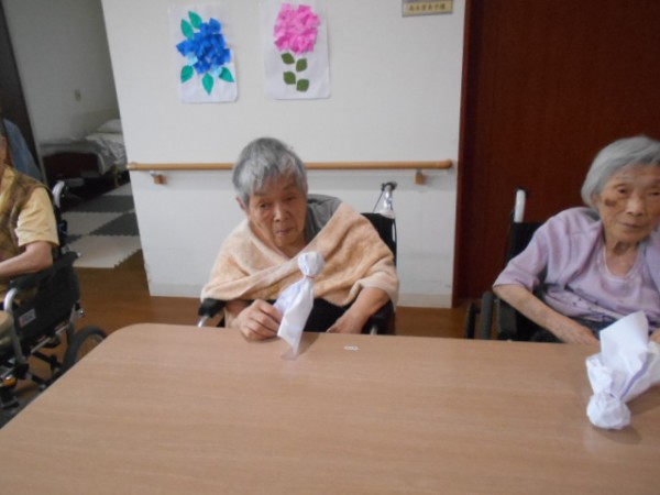 雨が続く中、てるてる坊主を作り