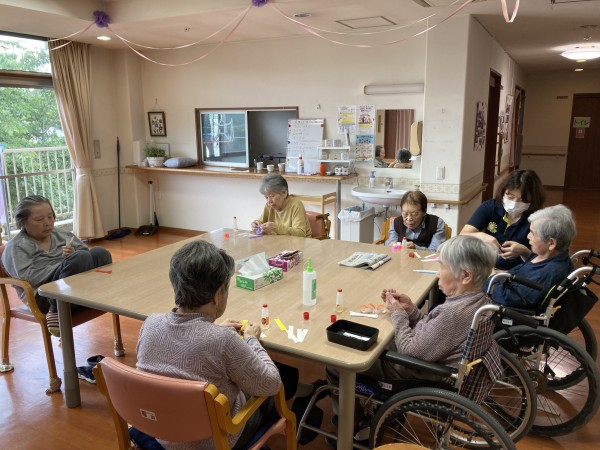 2F利用者様による七夕のお飾りの準備をしている様子です。