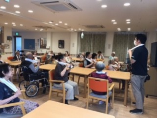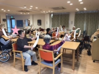 タオル体操は人気もあり、普段レクリエーションに参加されない