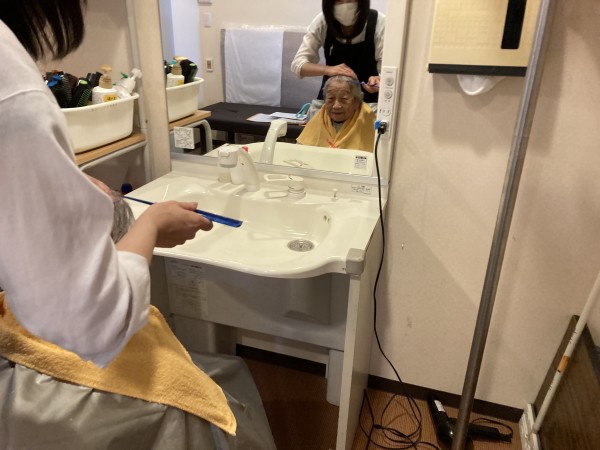 かけている時理容師さんと楽しくお話しながら過ごされます。