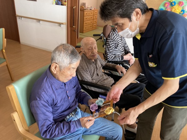 ホーム長が代表して、男性ご利用者様にプレゼントさせて頂きました!