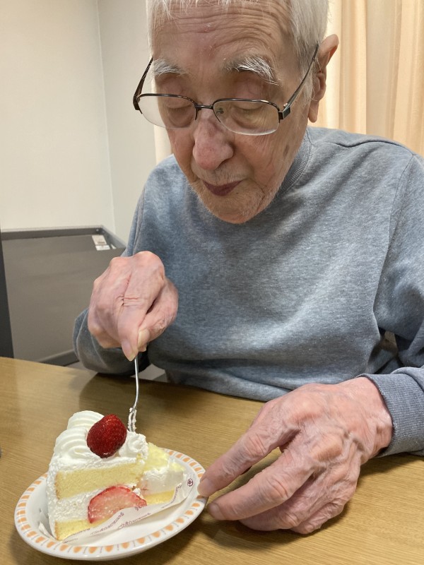入居者様のリクエストにお応えして、イチゴのショ-トケ-キを提供させていただきました
