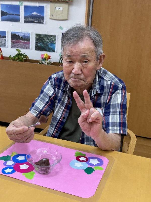 今回は職員手作りの『水ようかん』 甘さ控えめでなめらかでとても美味しかったと好評でした(・∀・)イイネ!!