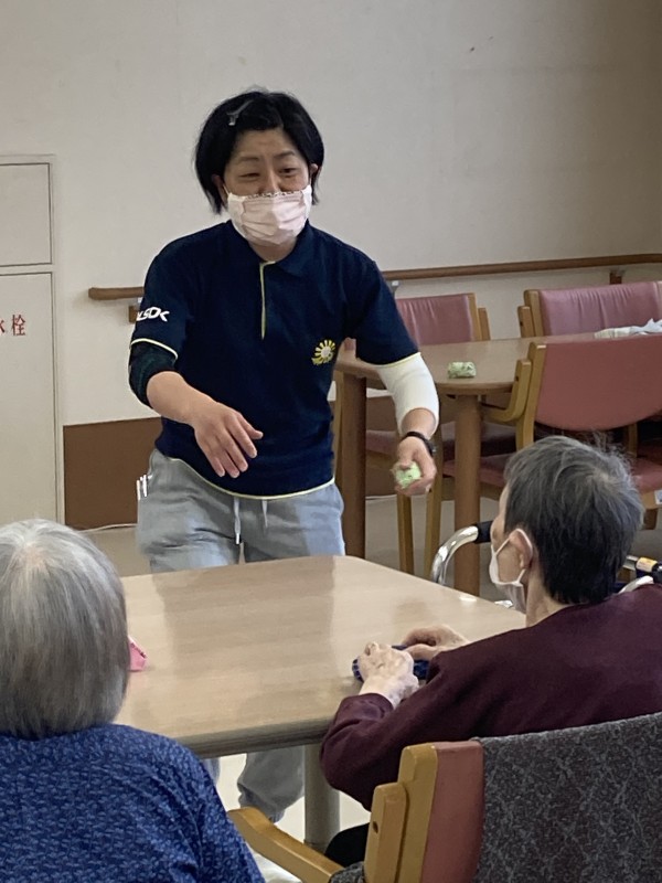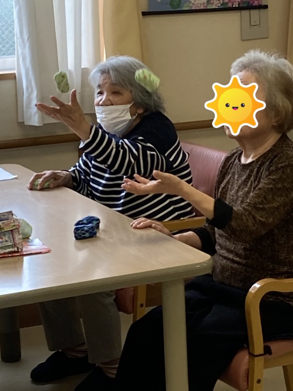 本日はK職員肝いりのレク、お手玉を用いた手遊びを