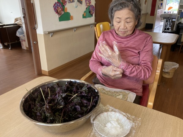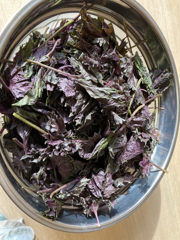 今日は赤じその下処理をすることに。