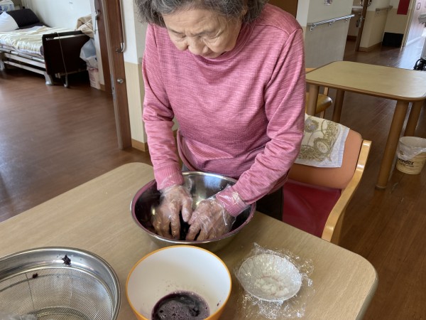 はじめは腰かけて塩をまぶしていたご利用者様ですが