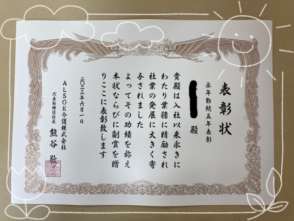 今回は私を含め、3人の職員が表彰されました(*ノωノ)