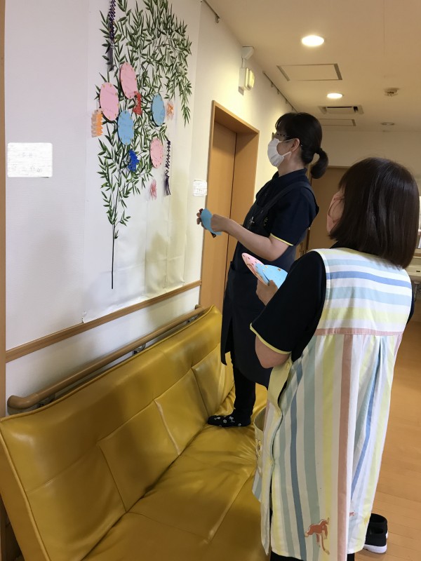 1階スタッフによる七夕飾りと短冊の様子になります‼