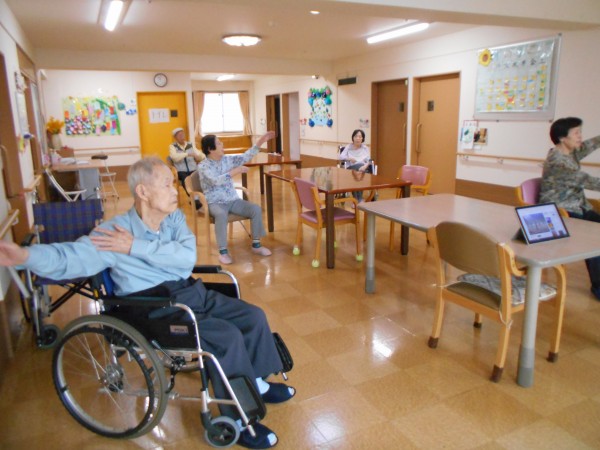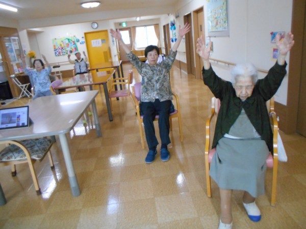 ご利用者様自身が体操の時間だよ!と呼びかけてくださったりと、健康な体作りのために毎日積極的に参加されています!