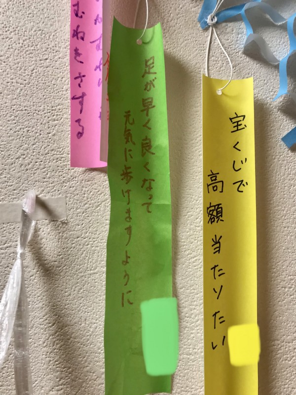 3階ではスタッフとご利用者様でコツコツと笹飾りを作成してきました(*´꒳`*)