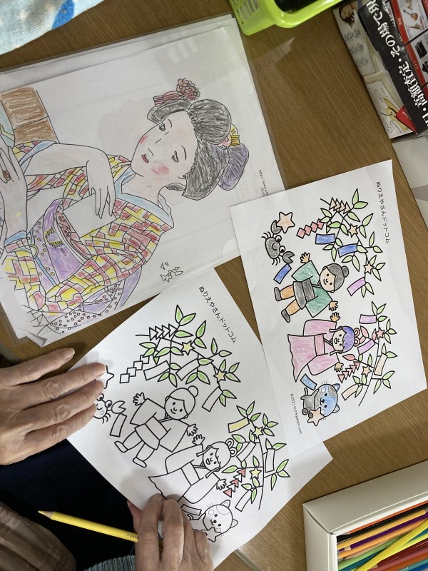 7月は七夕なので織姫様と彦星様の塗り絵も☆