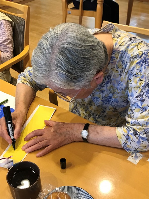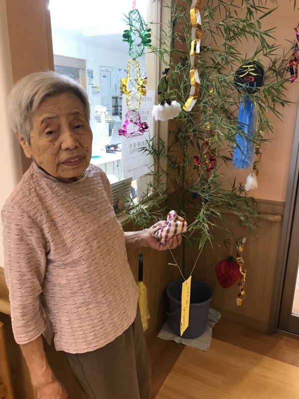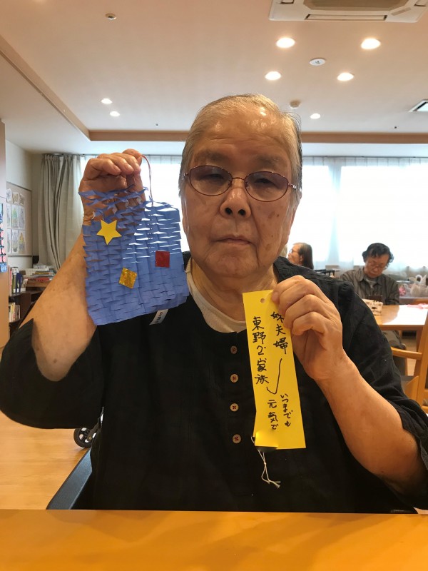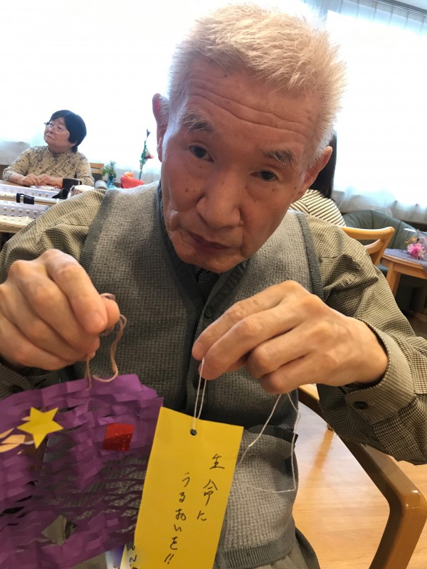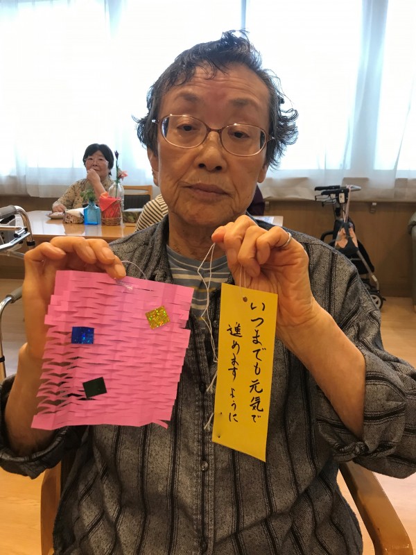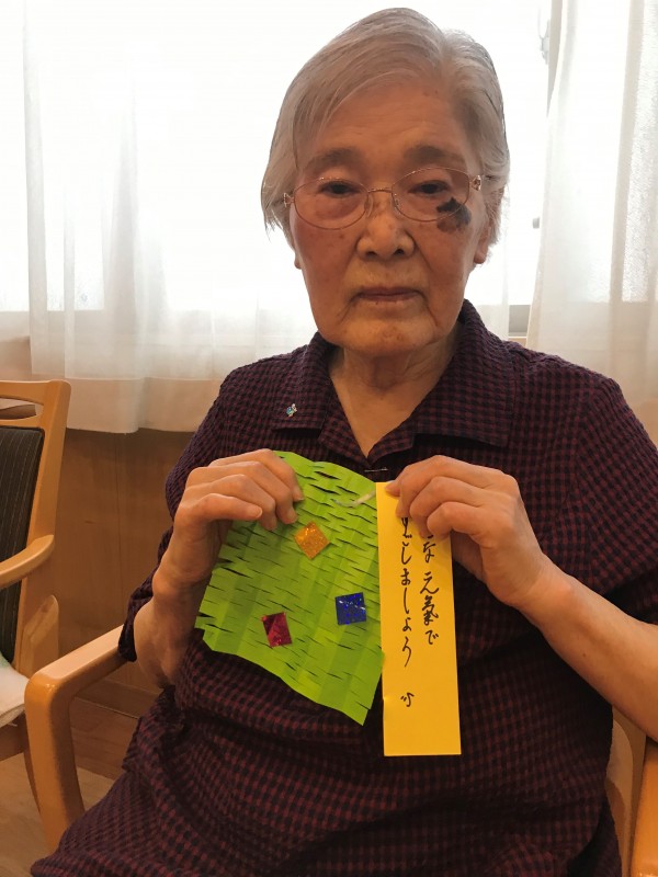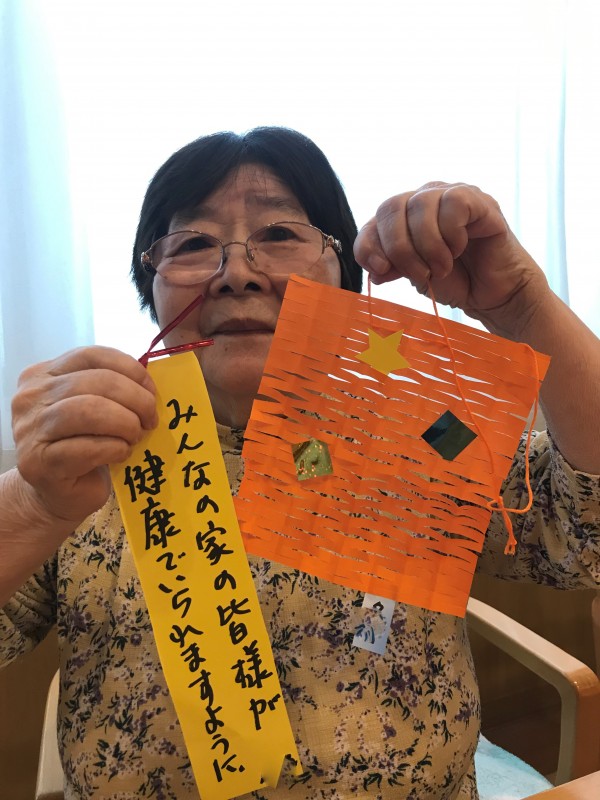 笹が届きましたので利用者様と一緒に願い事を書いてみました!