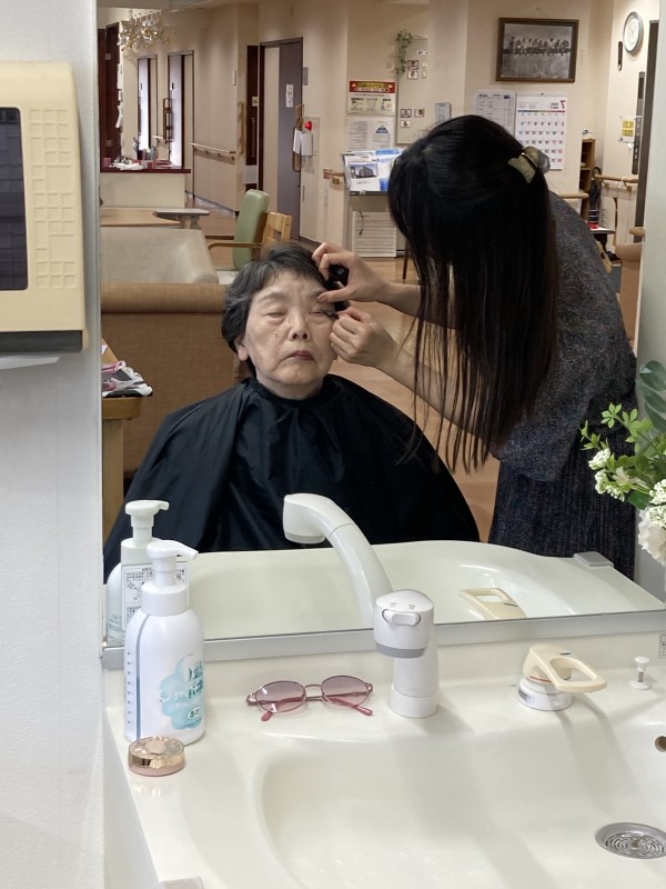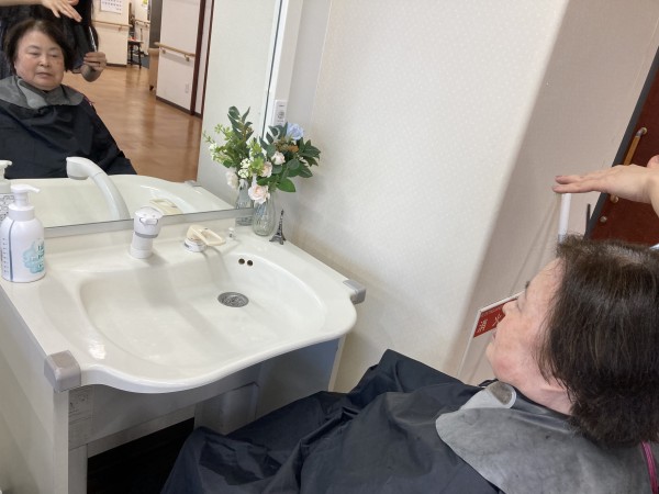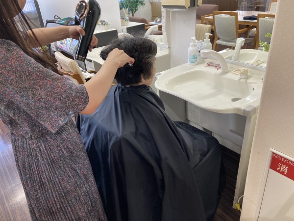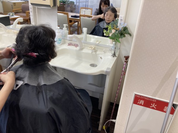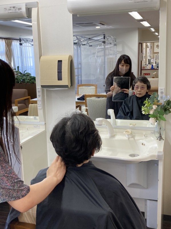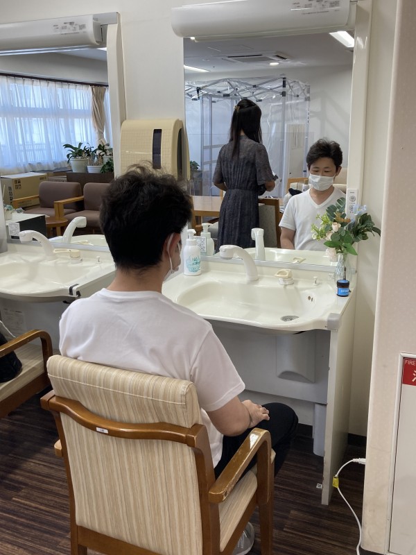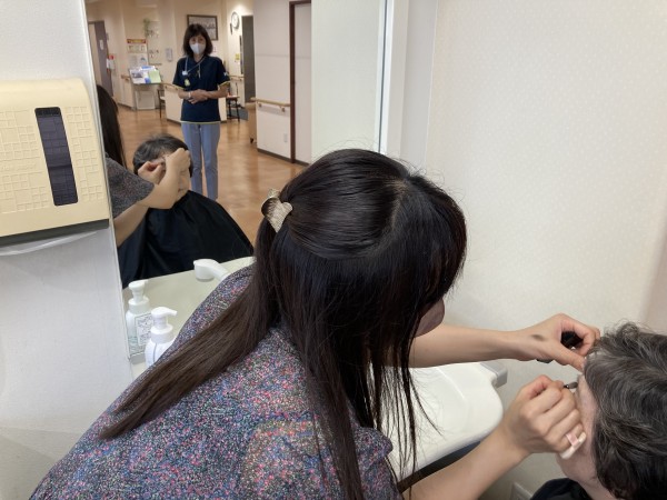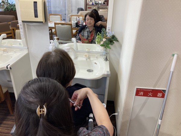 ボランティアさんの訪問理美容の様子。