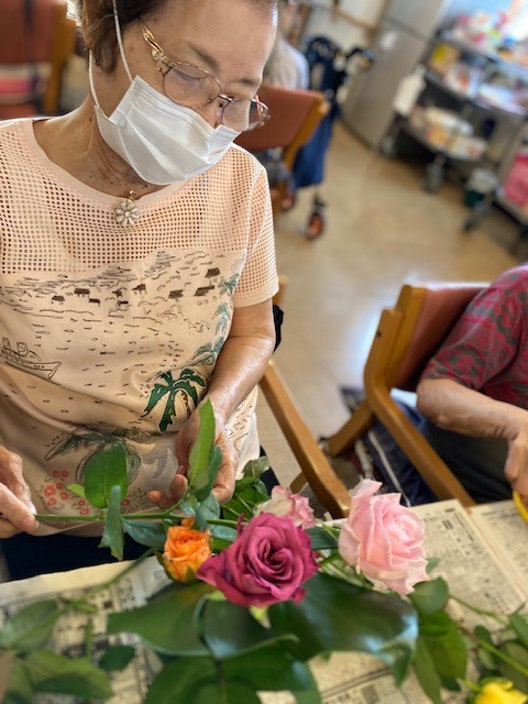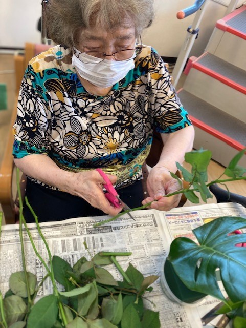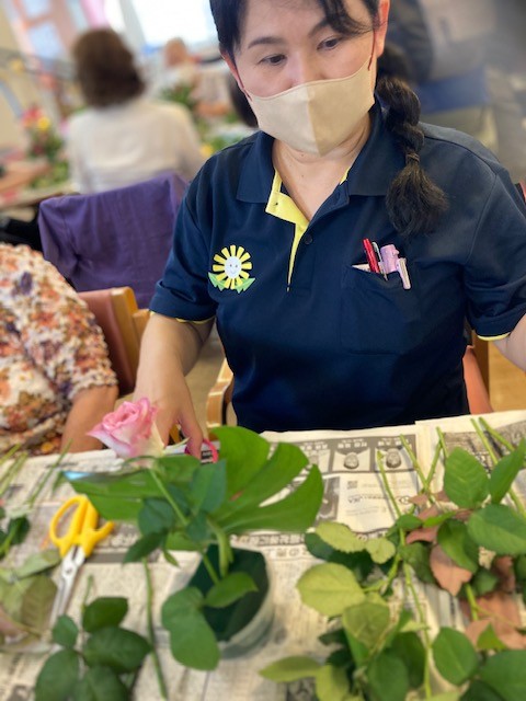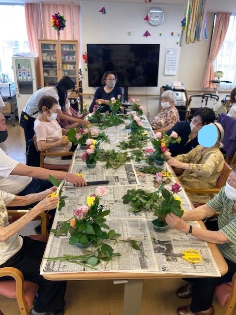 7月13日に講師の方をお呼びしてフラワーアレンジメント教室を開催しました(^-^)
