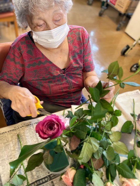 先生や職員も参加し、一緒に楽しく生けていきます(*^_^*)