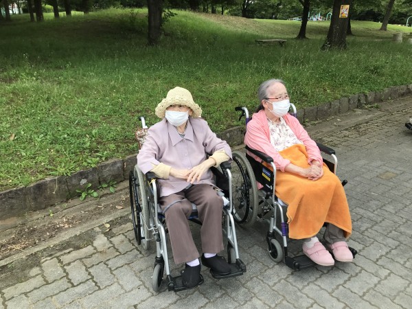 公園で緑を眺めながら軽くおやつを食べてのんびりしました。本日の天気は薄曇りで気温が25℃くらいで、動くと少し汗ばむ感じなのでゆっくりと移動しながら木陰でおしゃべりをしながら楽しいひと時を過ごす事が出来ました。
