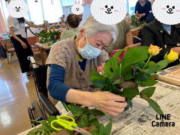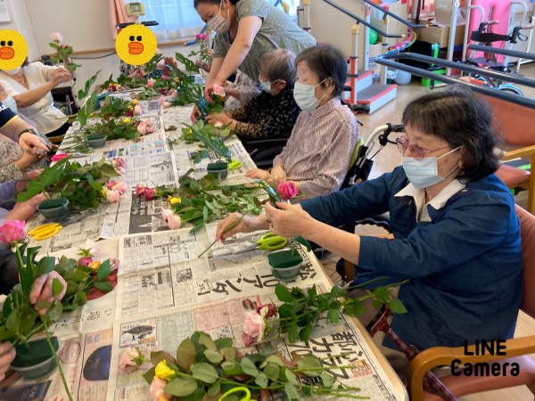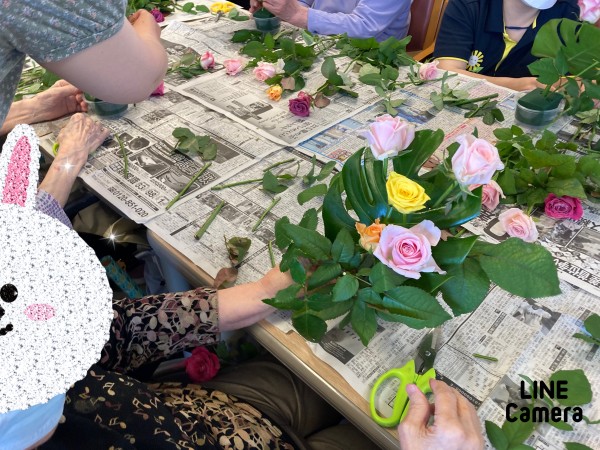 コロナウイルス感染症も落ち着きボランティアさんのフラワーアレンジメントがあるとゆうことで