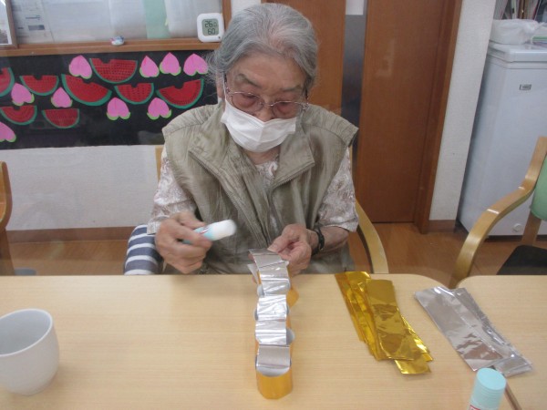 久しぶりの訪問客にお客様もとても興味深々!!せっかくなら会場を飾り付けようと、午前中から花や輪飾り製作にご協力して下さいました。