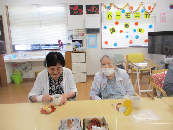 お客様と一緒にお話されながら、おやつを召し上がって頂きました。
