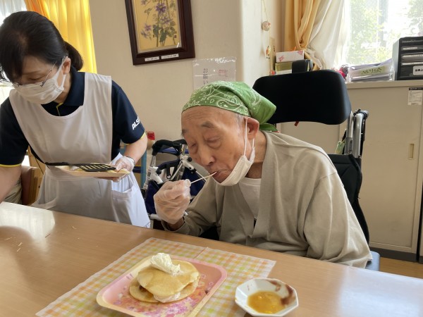 出来上がったパンケーキを、皆様おいしそうに召し上がっていました。