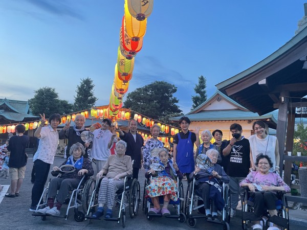 今は暑い日が続き、散歩には行けていませんが、夕方からの盆踊りは久しぶりのお散歩にもなりました。みんなで出掛けられる機会は貴重です。同じ楽しい時間を共有できることは大切ですね。