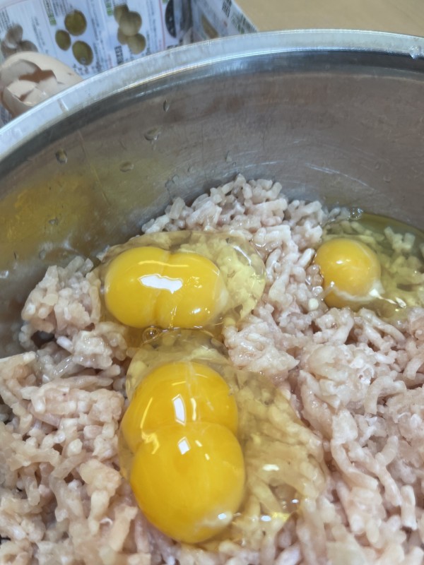 どうやら鶏団子を作っているようです。