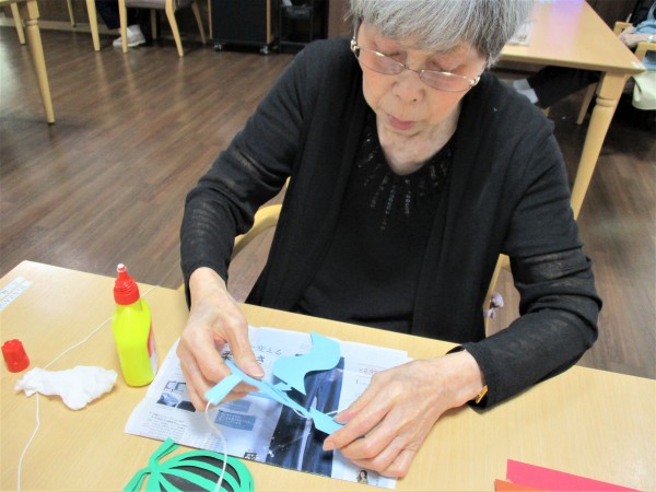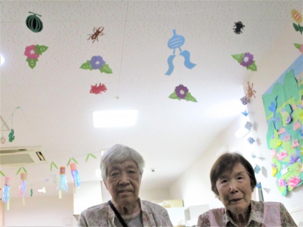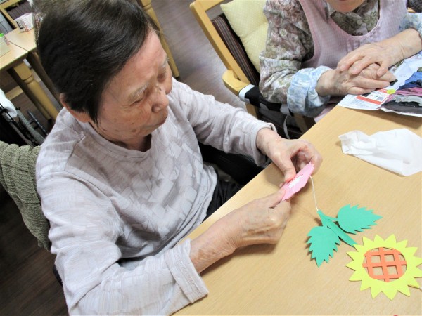 みんなの家・与野公園では、7月最後の制作レクで『盛夏の吊るし飾り』を作りました。