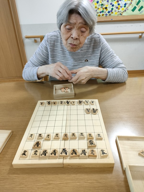 シーツ交換を手伝っていただいた後は将棋の駒を並べて貰っていたのですが、時間が来てしまい途中で中断することに。