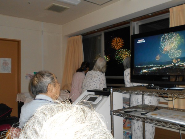 いつも早くお部屋にて休まれるご利用者様もお声かけすると「花火見たい!!じゃあ起きてる!!」と
