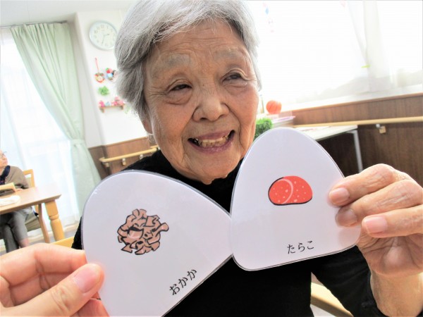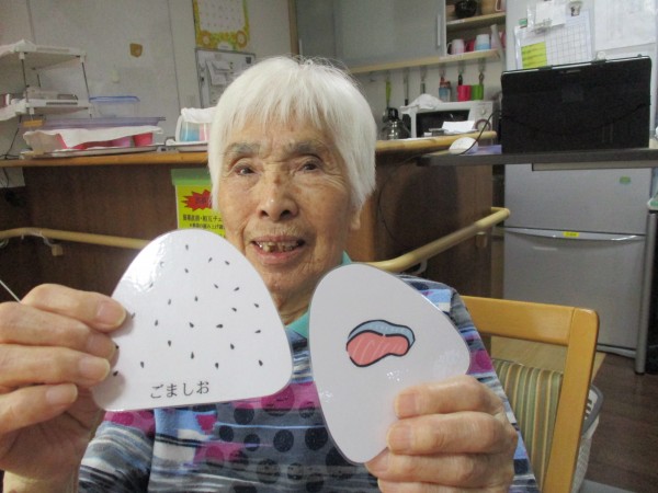 午後のひととき“手作りおにぎり神経衰弱ゲーム”、で頭の体操をしました。
