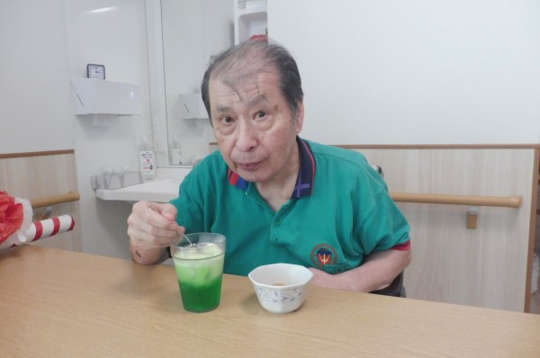 今日は暑い、涼やかな物が飲みたいわよね~と。籠の中。今はレトロブームらしいので、クリームソーダにしょう!