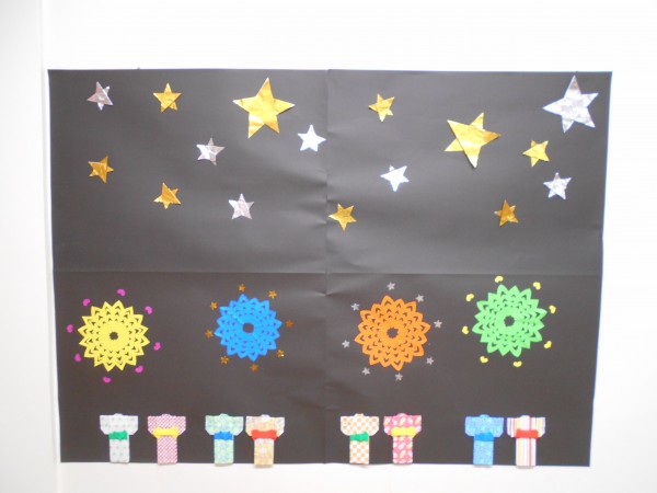 朝顔に鬼灯と季節の花、花火と夏を感じられますね♪