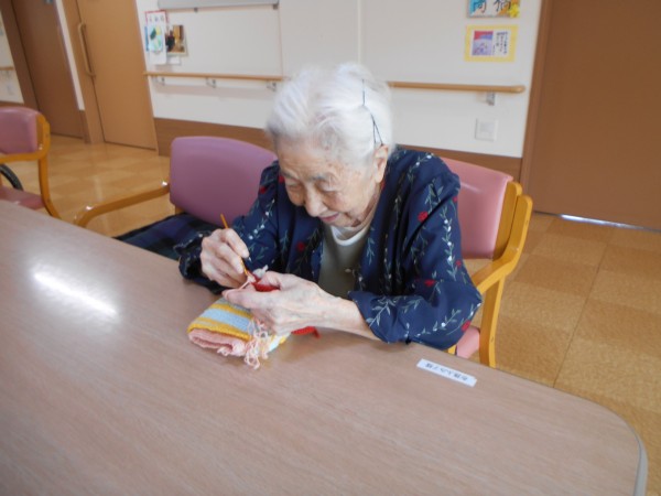 こちらのご利用者様は編み物をされています。手先がとても器用な方で、お部屋にも自身で編んだ物がたくさん置かれています!