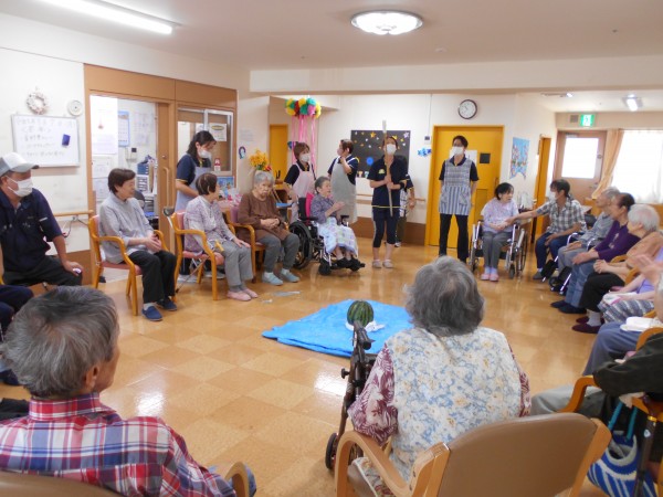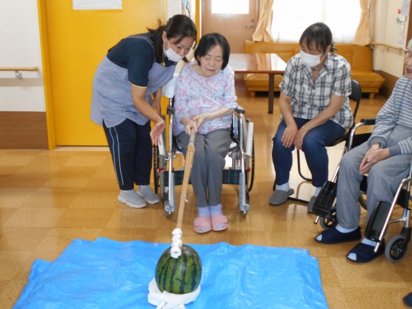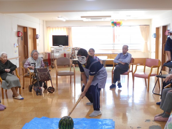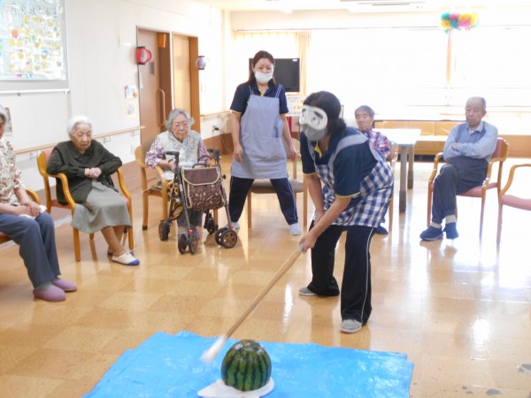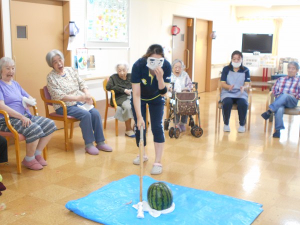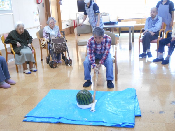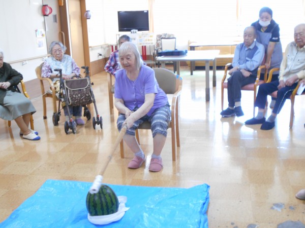 ホームでは7日、スイカ割レクと8月誕生日会を開催しました(^^)/