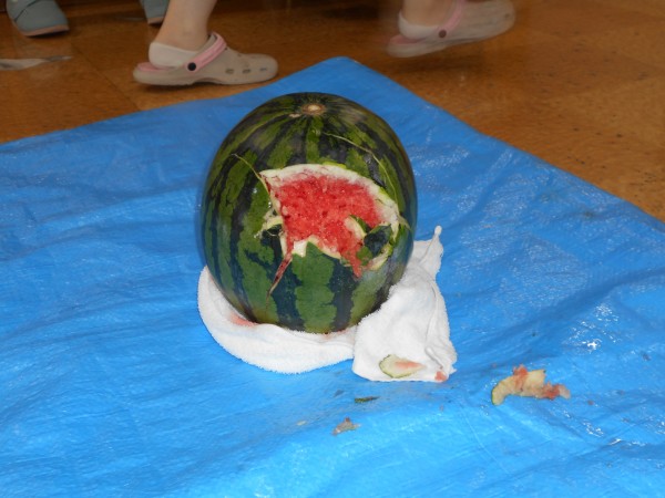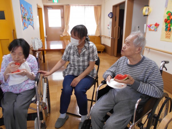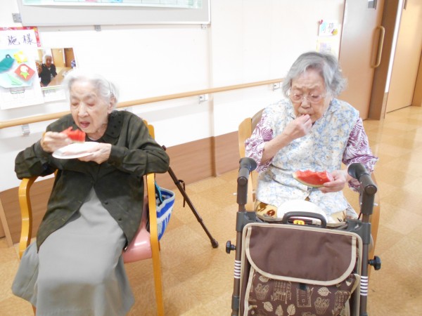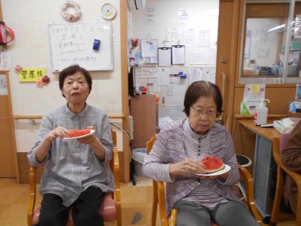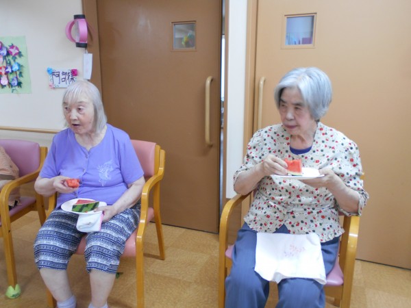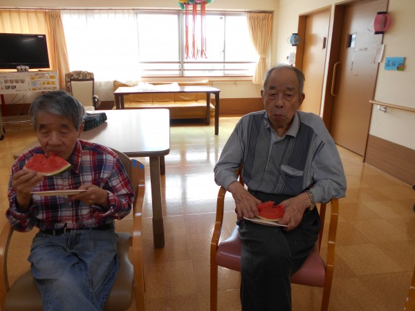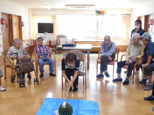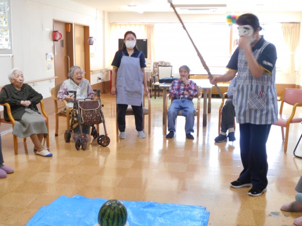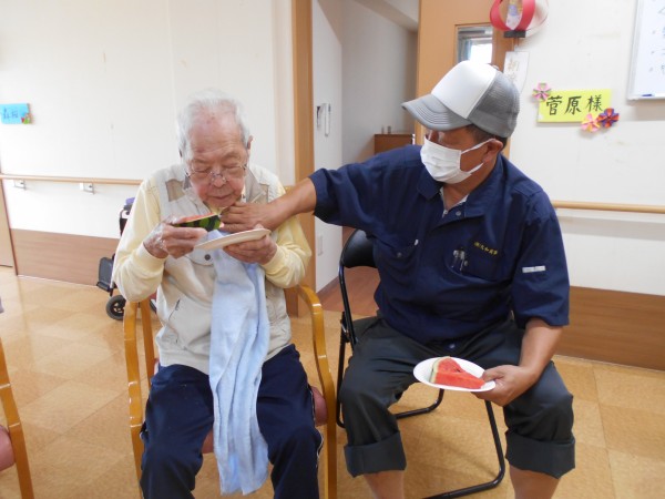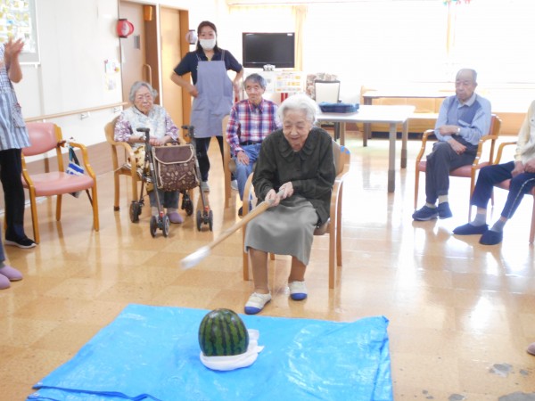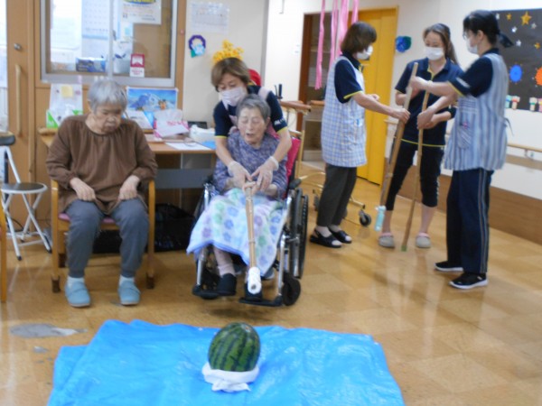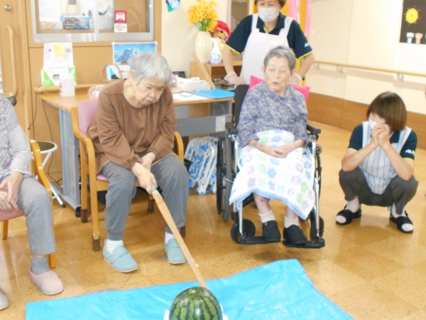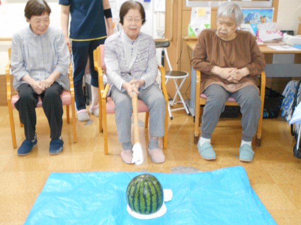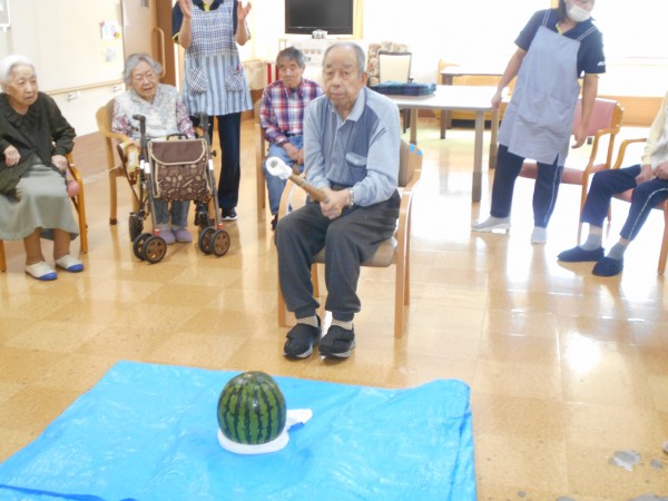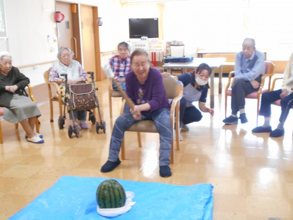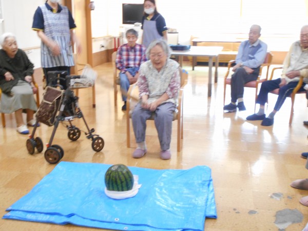 よく見ると最後、スイカの破片と思われるものと周りのご利用者様の表情がビックリされていますね(≧▽≦)
