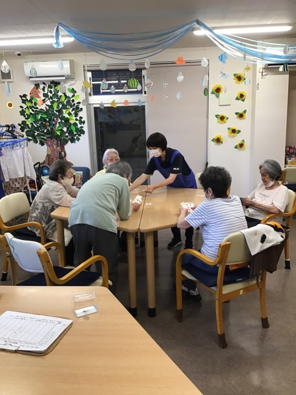 センター長がトランプをよくきって配ります(*^▽^*)